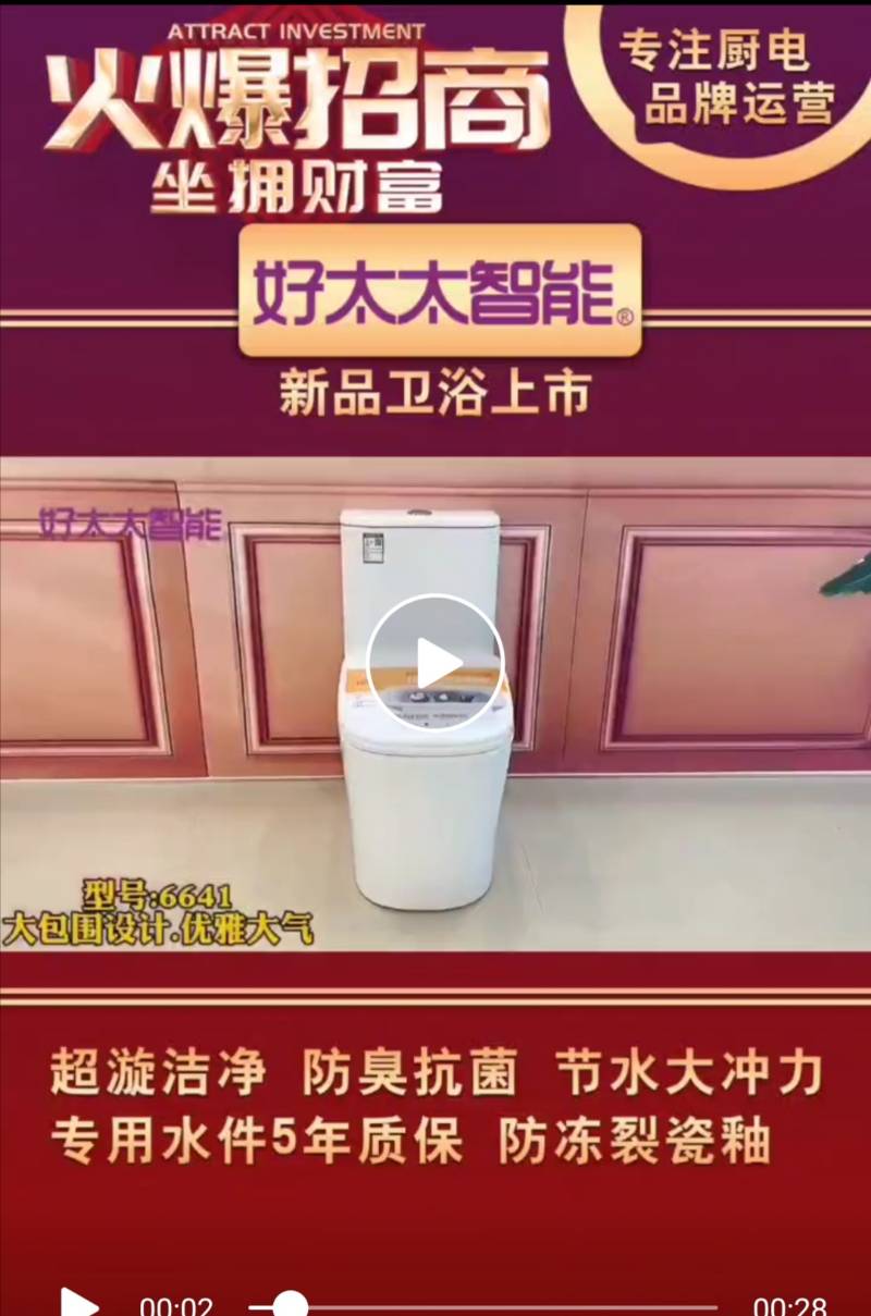 好太太智能 智能马桶6641首创水箱施釉 防冻剂瓷釉