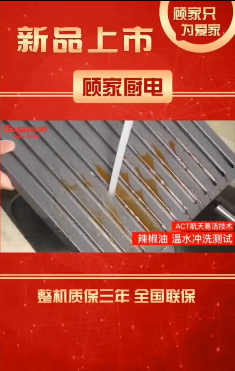 顾家厨电 新技术展示【ACT航天易洁技术辣椒油温水冲洗测试】